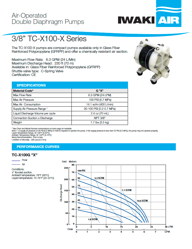 TC-X100-X Series are compact pumps available only in Glass Fiber Reinforced Polypropylene (PPG) and offer a chemically resistant air section.